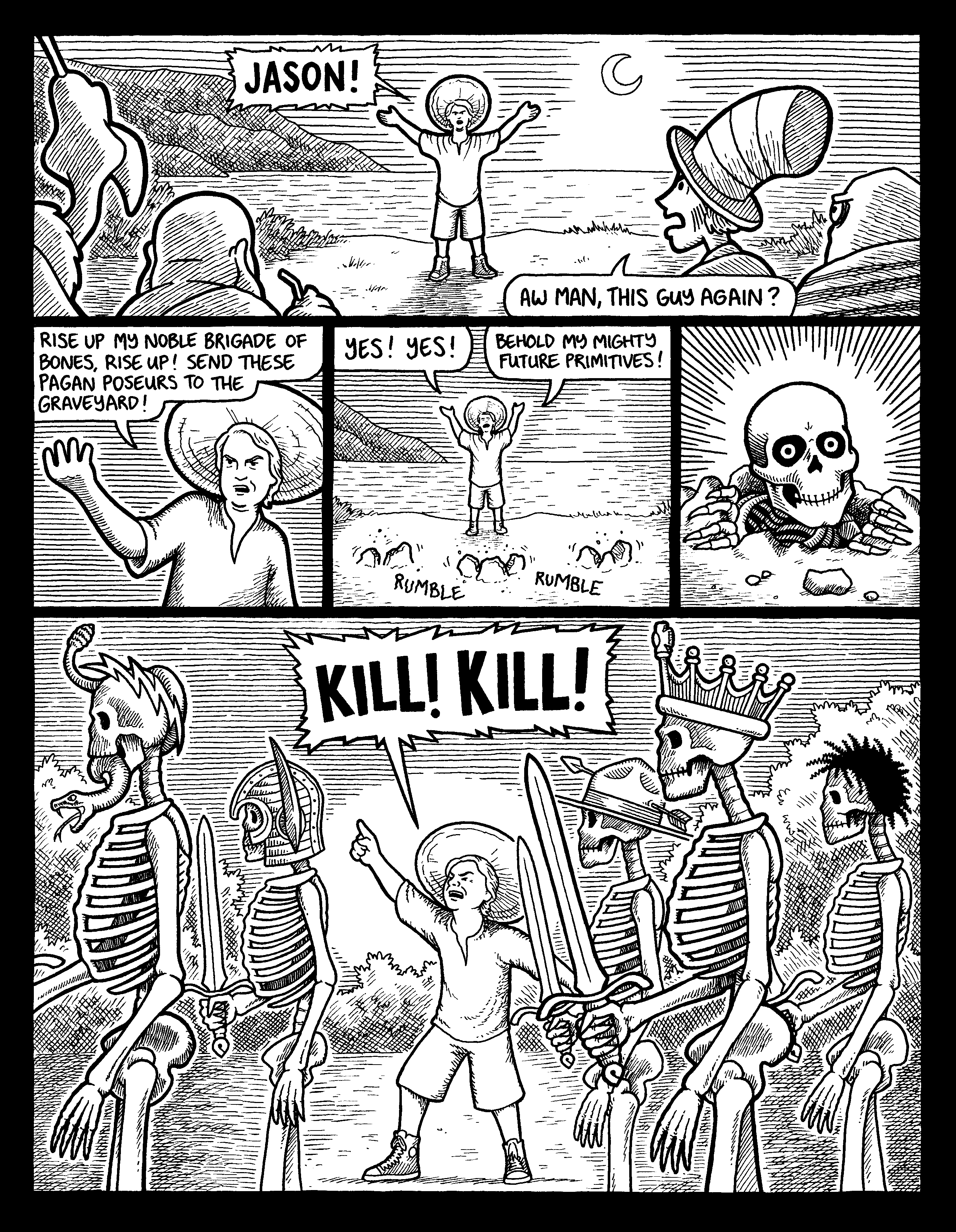 Since we’re mostly all locked up and looking for things to do, Jon hit us up with the idea to put up his one-color comic as a coloring contest, giving you all the chance to ink his drawings however you wanted. Great idea, easy content, and something to do to keep ourselves from going absolutely stir-crazy while in staying at home–done deal.