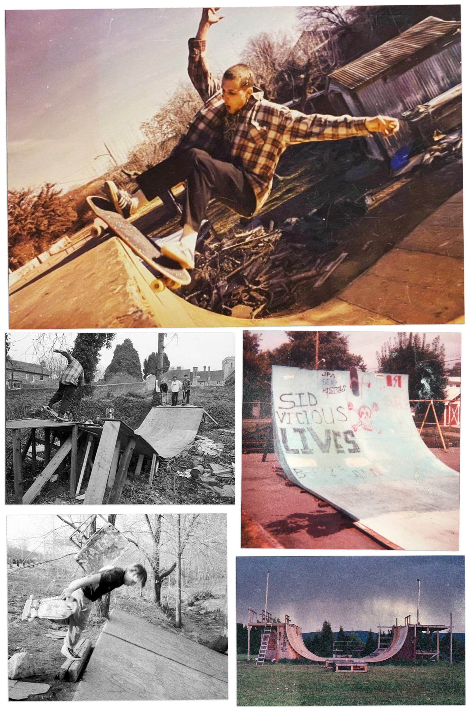 It was kind of a spur-of-the-moment thing. There was no real plan or anything. The first photo was this one I found of some kid doing a frontside air, I think, over a channel on this beat-to-hell wooden ramp sometime in the fall or winter. All bare trees, everything was just super raw. That’s what started it.