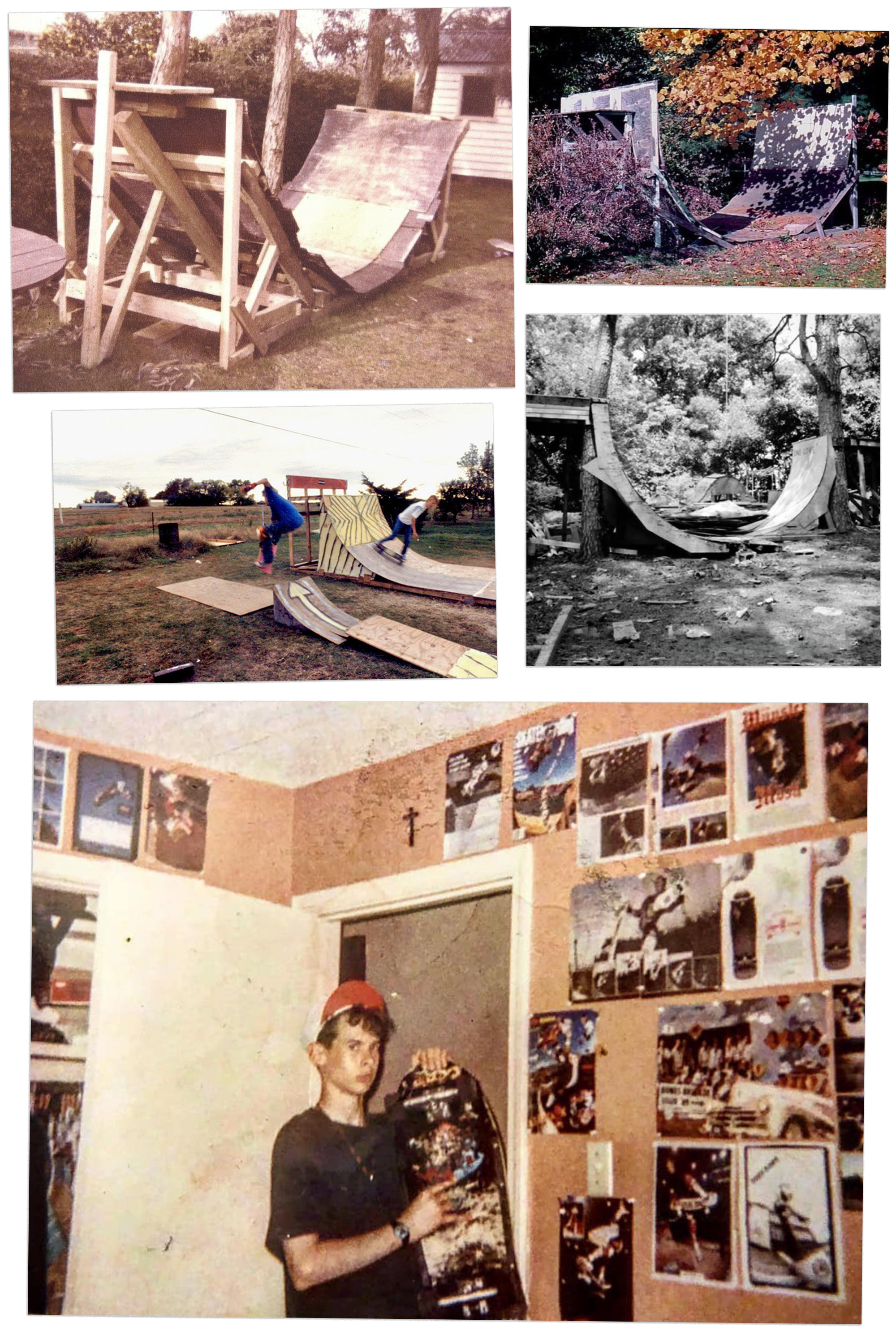 That’s me in that last photo. I was obsessed with Tony Hawk. That’s my Tony Hawk magazine page wall and my first board (a Tony Hawk which I still have). I had a Lousiana wall also for inspiration (What up Sal).